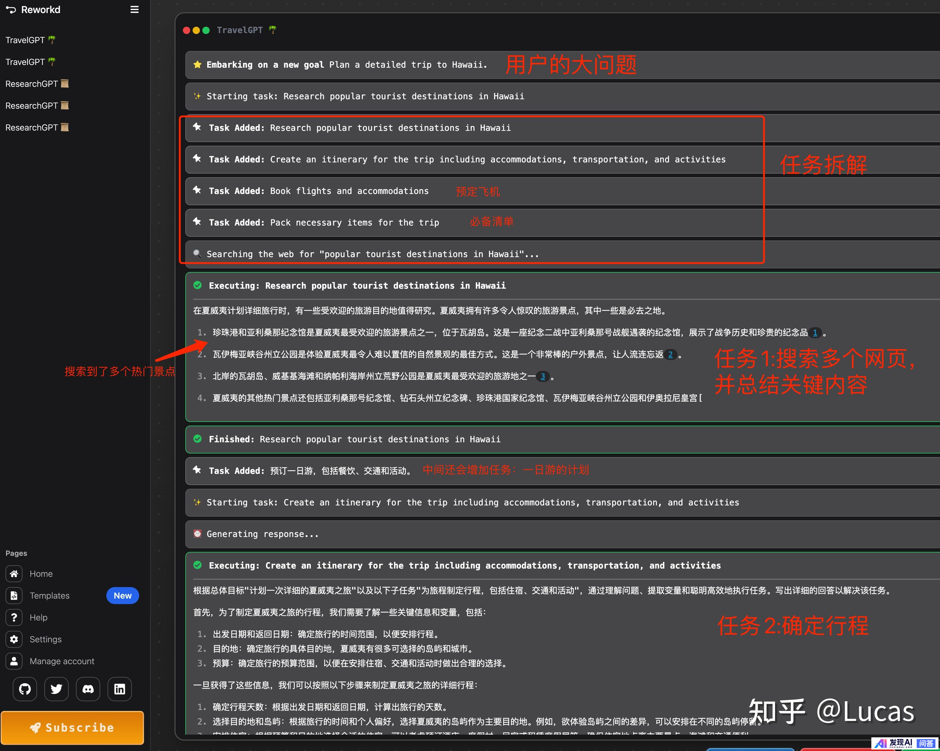 - 反思和改进:代理可以对过去的行动进行自我批评和自我反思,从错误中学习并改进未来的步骤,从而提高最终结果的质量